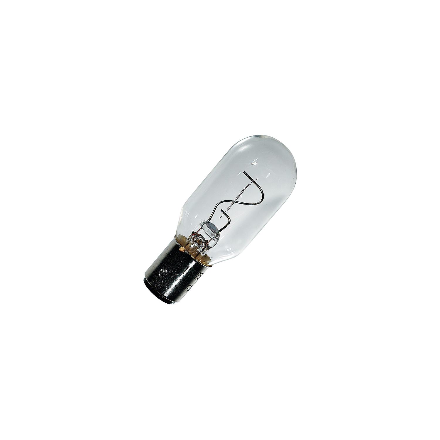 120V .25 Amp 30W Double Contact Bayonnet(1) Heavy-duty glass envelope for break resistance. Nickel-plated brass prevents corrosion while insuring a positive point of contact. Sold 2/pk.