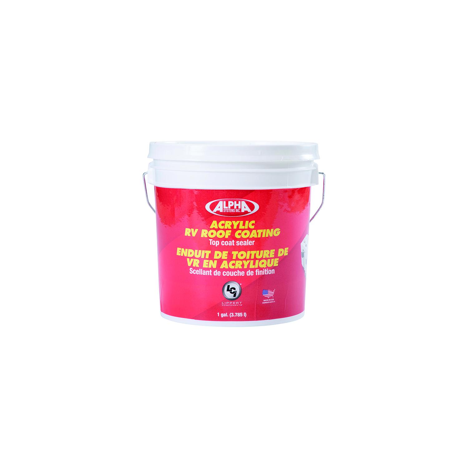 Alpha Systems 862401 Acrylic Rv Roof Coating, Gal. This sealant is a water-based, acrylic coat thats formulated to protect and maintain your RVs roofing surface. Helps keep roofing surfaces cool, can be re-coated as often as needed. 1 gallon covers approx. 200 sq. ft.