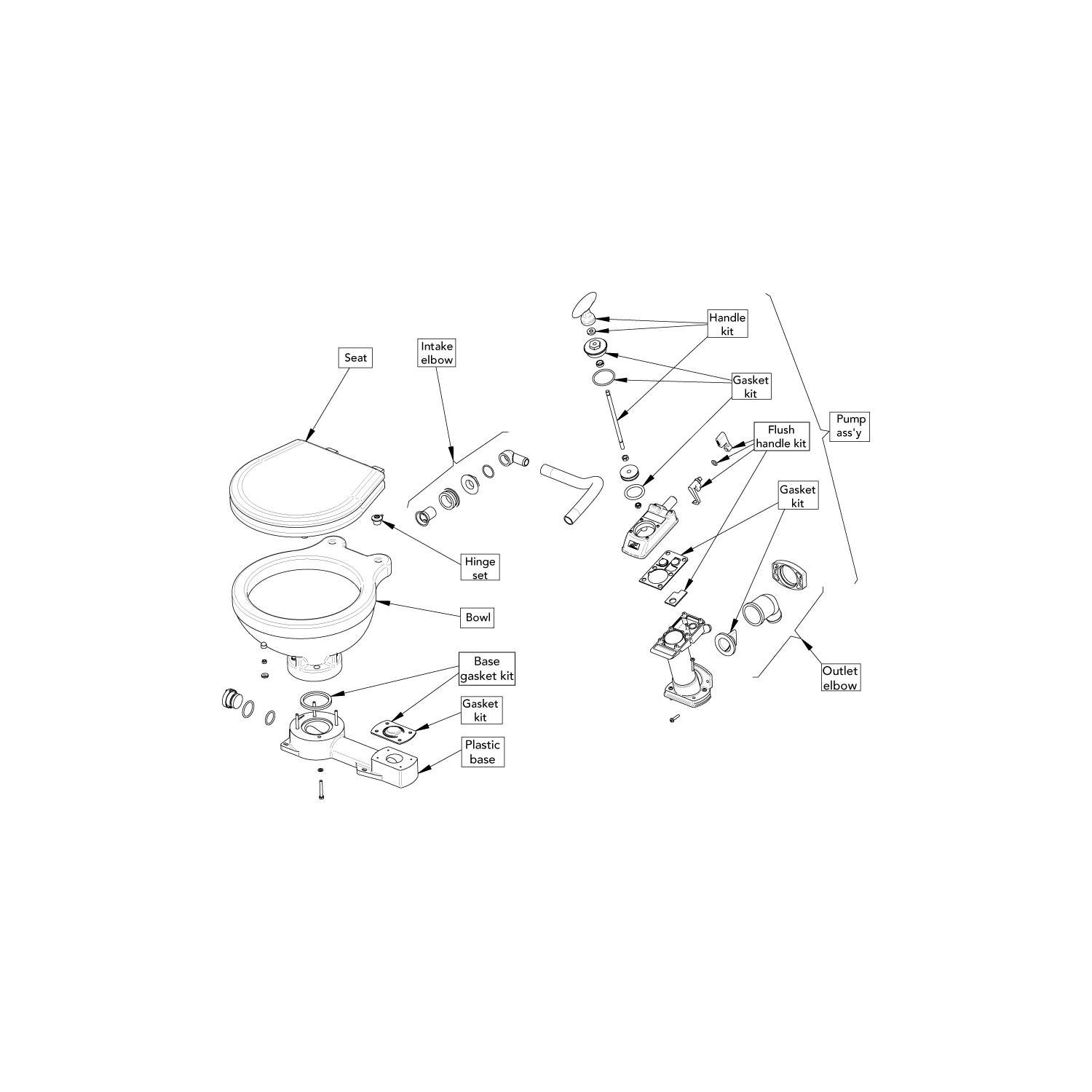 Aqua-T Compact Manual Toilet Ergonomic pump handle for ease of usePump can be mounted left or right of the toilet bowlInnovative brake bushing prevents annoying leakage at the handleRobust wooden seat with durable baked enamel finishSelf-priming pumpSuitable for OEM or replacement installation, direct replacement for Jabsco.