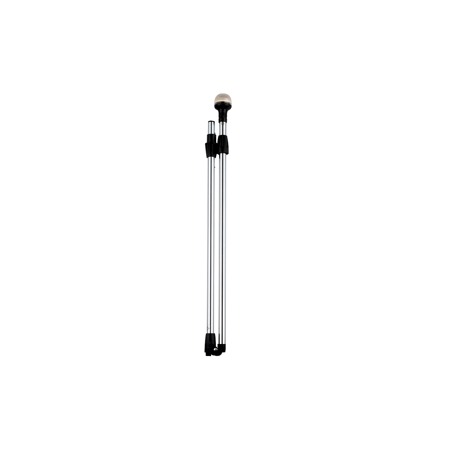 Attwood All-Round Light With Folding Pole 54″ Two-mile, 360 visibility, for boats up to 39.4′ (12 m) length. Since all-round lights must be at least one meter (39-3/8″) above sidelights, some boats require a long light pole. The removable pole folds in half for easy stowage. 2-pin locking-collar pole. 9-watt wedge-base lamp. Anti-glare lens focus at the horizon and above, not in the driver’s eyes.