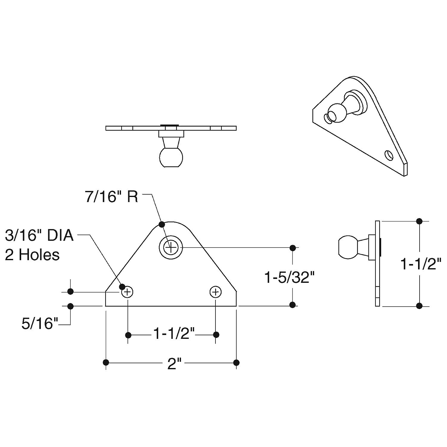 Attwood Flat Gas Spring Mounting Bracket Ball Pem Forward 2 Holes Stainless Steel Mounting bracket: pem type: Ball 10mm. direction forward.