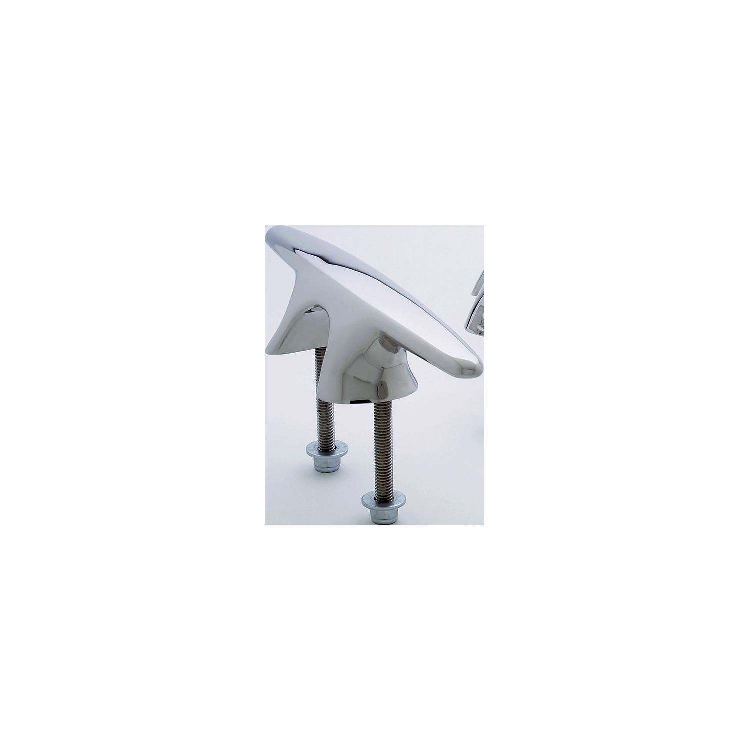 Attwood Whitley Cleat Unique offset design, polished stainless finish provides an attractive, premium appearance. Enhanced 316 stainless steel construction, acid and rinsing baths remove surface contaminants and produce a mirror-finish hydrous oxide film. Stainless steel locking buts and washers are supplied to fit the concealed stainless steel studs.