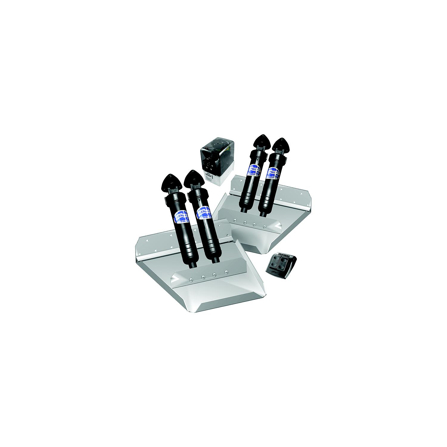 Bennett ST16 Performance Tab System, 12″ x 16″ The Sport Tab Series is engineered for the demands of offshore water conditions for speeds up to 60 mph. Features two heavy duty stainless steel tabs with powder coated black finish, secured with heavy duty mounting plates and fasteners. The ST16 Sport Tabs come with dual actuators on each tab. Kit also includes Euro-Style rocker switch, hydraulic power unit, and all necessary wiring, tubing and hardware.