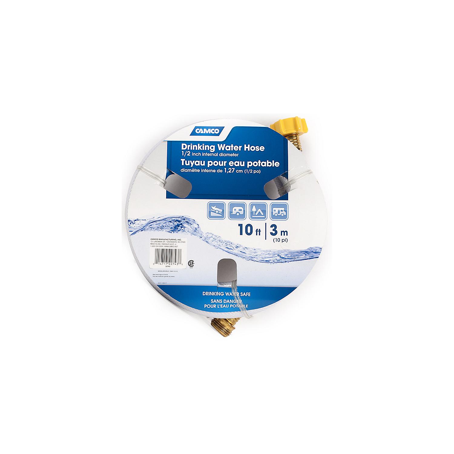Camco 22743 TastePURE Drinking Water Hose 1/2″ x 10’L Super heavy duty hoses are reinforced for maximum kink resistance. Especially useful when attached with a Y-valve to your main faucet. Made of FDA approved materials. Drinking water safe.