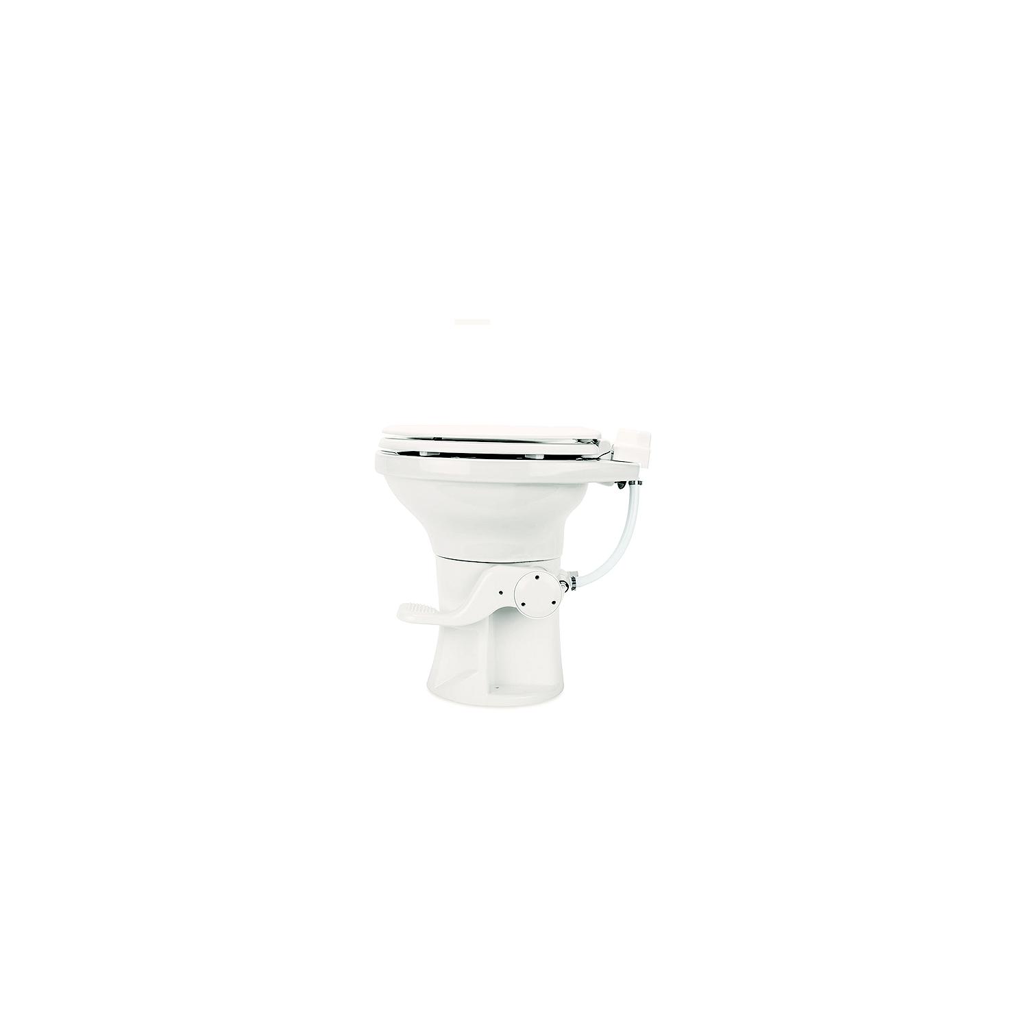 Camco 41715 Premium Ceramic RV Toilet, Bone Camcos Premium Ceramic RV Toilet provides a stylish and comfortable RV toilet upgrade. Its full-size ergonomic design offers superior room and performance. This premium toilet is ideal for full-time RVers or those who want the simple comforts of home. It has an 18″ chair-height seating, a full-size ceramic bowl, and a premium wood seat that are anything but standard! The gravity flush system offers a strong flush. Easy to use, the hygienic foot pedal conveniently features a two-step flush – press halfway to add water to the bowl and then all the way to flush. The soft-close seat and lid are non-slamming for quiet use. This toilet is constructed of durable ABS resin with a ceramic bowl. Ceramic is easier to clean than competitor plastic bowls and provides a solid feel. Product measures 18-1/2″ (L) x 14-3/4″ (W) x 19-1/2″ (H) and weighs 32 lb. It has a maximum weight rating of 250 lb. Includes the toilet assembly, floor seal, and mounting hardware. Standard two-bolt installation. Bone.