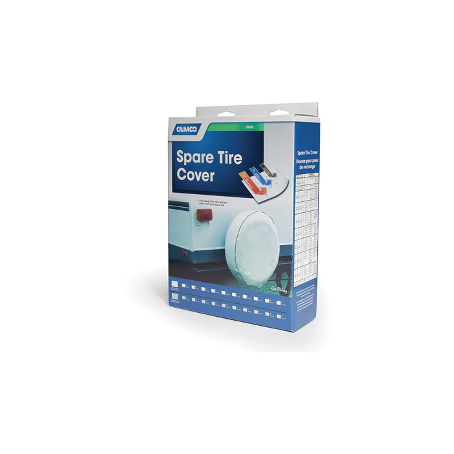 Camco 45346 Vinyl Spare Tire Cover, 27″ Diameter, Arctic White Vinyl cover helps keep dirt, rain and sun away from spare tire. Heavy nylon thread helps ensure weatherproofing of seams.