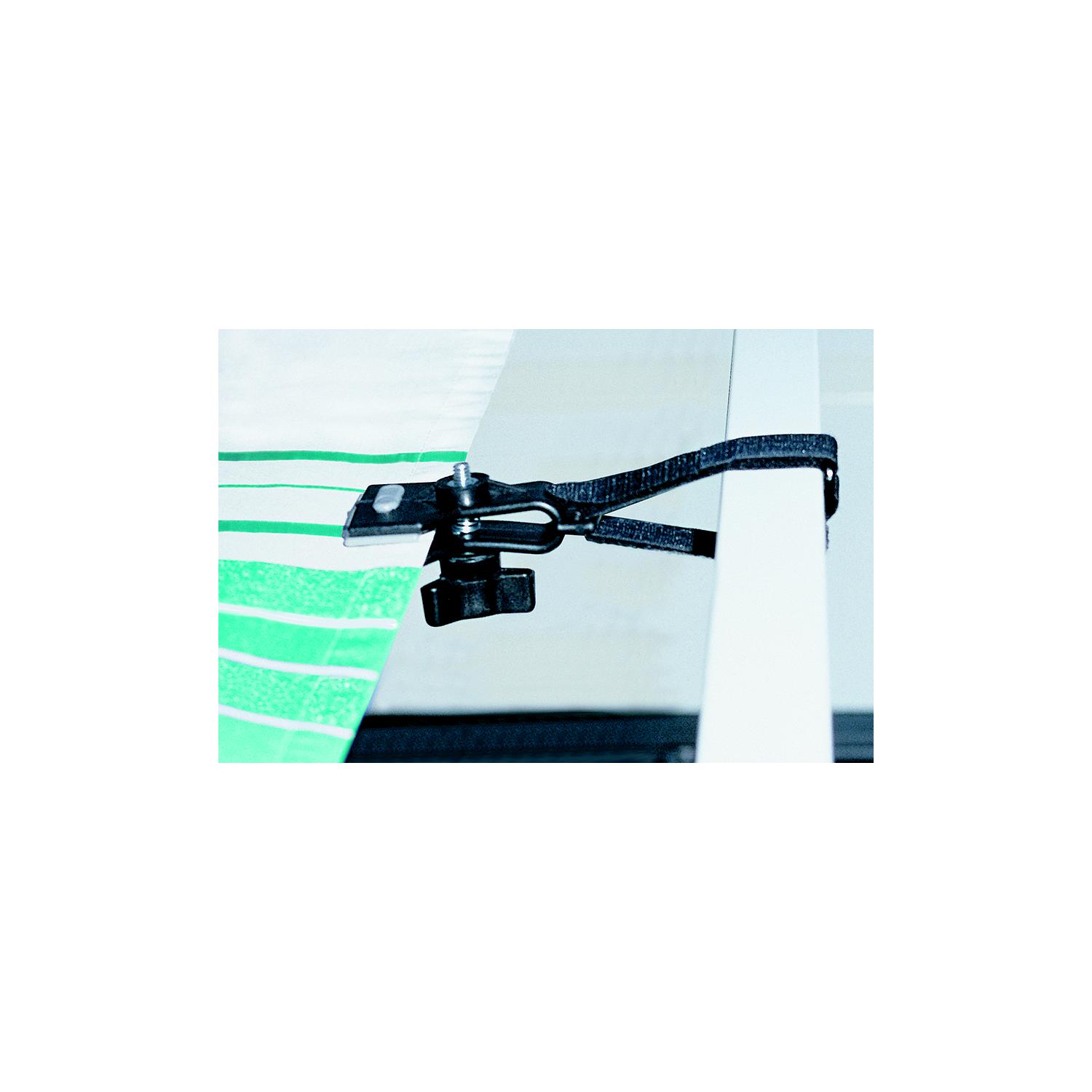 Camco De-Flapper Protect your valuable RV awning from costly rips and tears while preventing noisy wind flapping. De-Flapper holds securely with hook-and loop fastener straps. Made of durable nylon with UV stabilizers, chemically resistant and rust proof. Universal fit. Soft, non-marring grippers protect awning fabric. Can be used with screen room in place. Patented.
