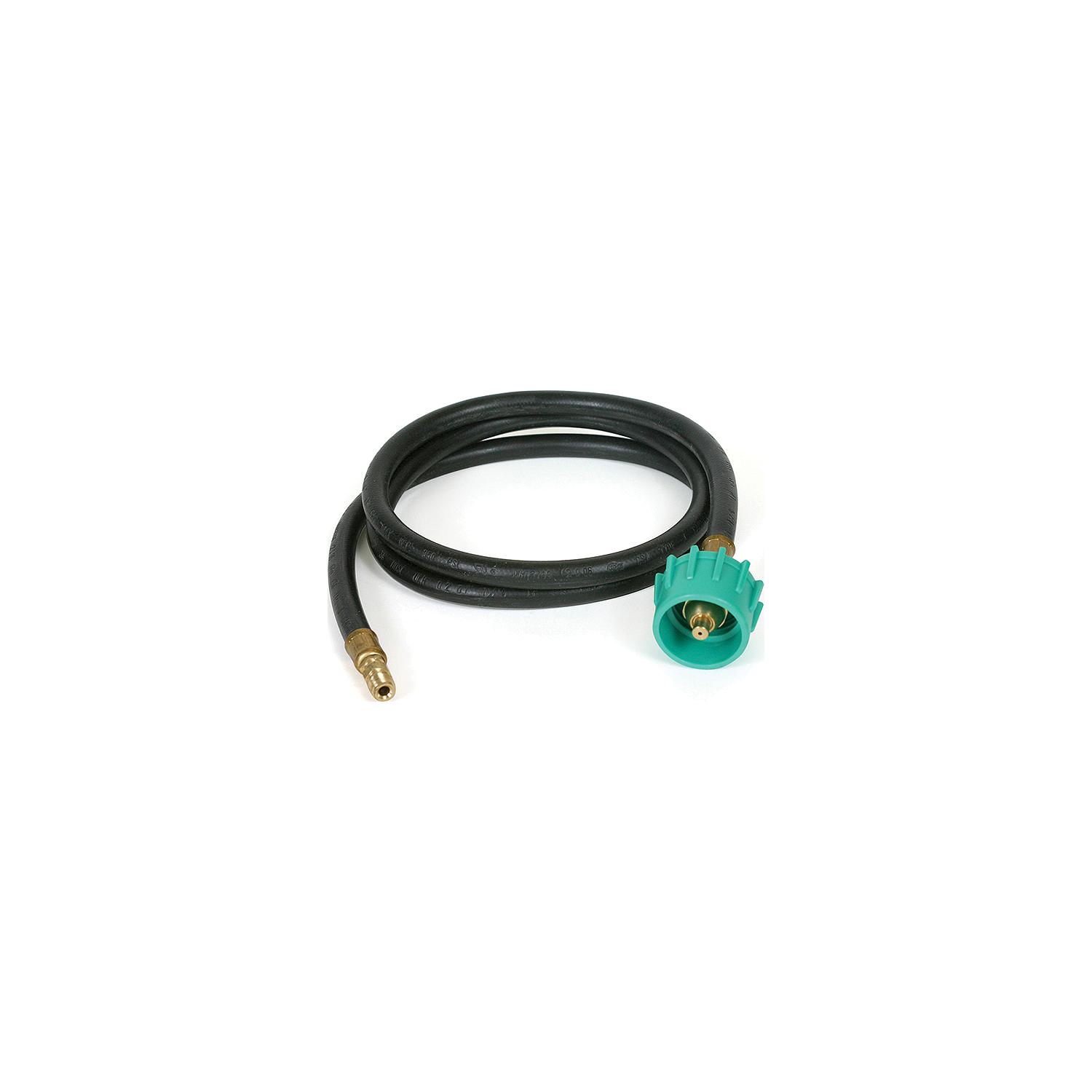 Camco Pigtail Propane Hose Connector With Male Inverted Flare For connecting propane cylinder to RV or trailer propane regulator. Rated for 200,000 BTUs per hour. Safety features include thermal protection in case of fire and excess flow protection in case of broken gas line. Type 1 ACME nut x 1/4″ inverted male flare.