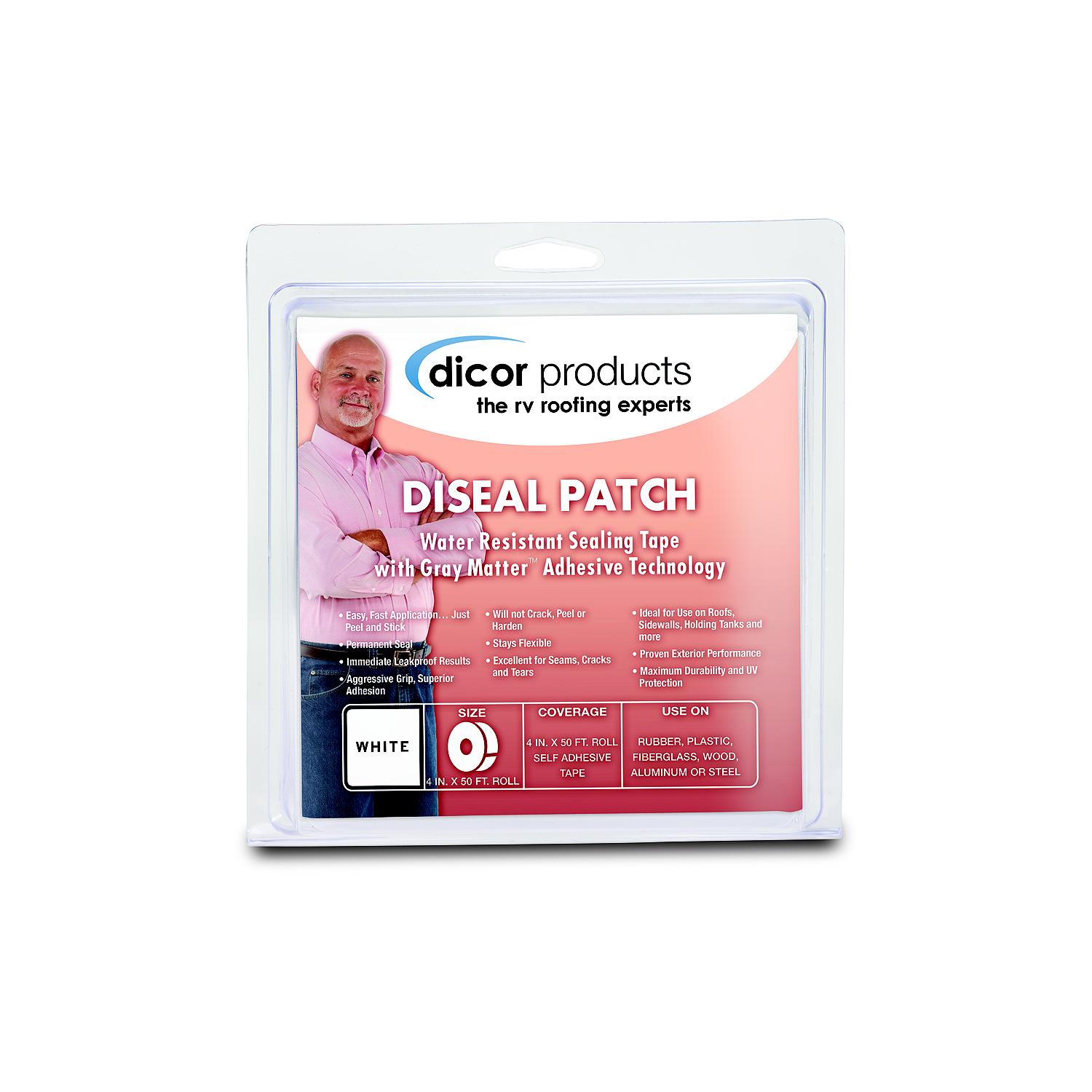 Dicor 522TPO661C Seal-Tite Sealing Tape, 6″ x 6″ White Patch A flexible weather resistant compound designed for sealing EPDM rubber, TPO, fiberglass, wood, plastic, steel or aluminum. Permanently seals most leaks immediately and fully cures within 24 hours. Will not crack, peel or harden.