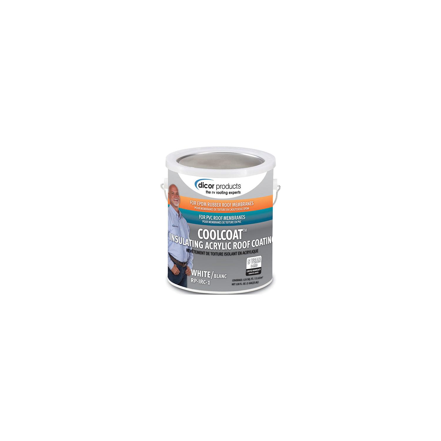 Dicor Cool Coat Insulating Roof Coating, White, Gal. CoolCoat is the first EPDM insulation roof coating, lab proven to reduce heat flux transfer from the roof of your RV to the interior of your RV by up to 29%. CoolCoat contains MicroCells, nano-sized ceramic spheres that are vacuum formed eliminating all gas inside the microsphere. Vacuum technology, used for years in Thermos containers to keep liquids hot or cold for hours, substantially reduces heat flux transfer from the hot side of your RV roof to the cool side of your RV ceiling. Apply a minimum of 2 coats at a rate of 1 gallon per 125 sq. ft. (i.e., 8′ X 30′ roof takes 4 gallons).