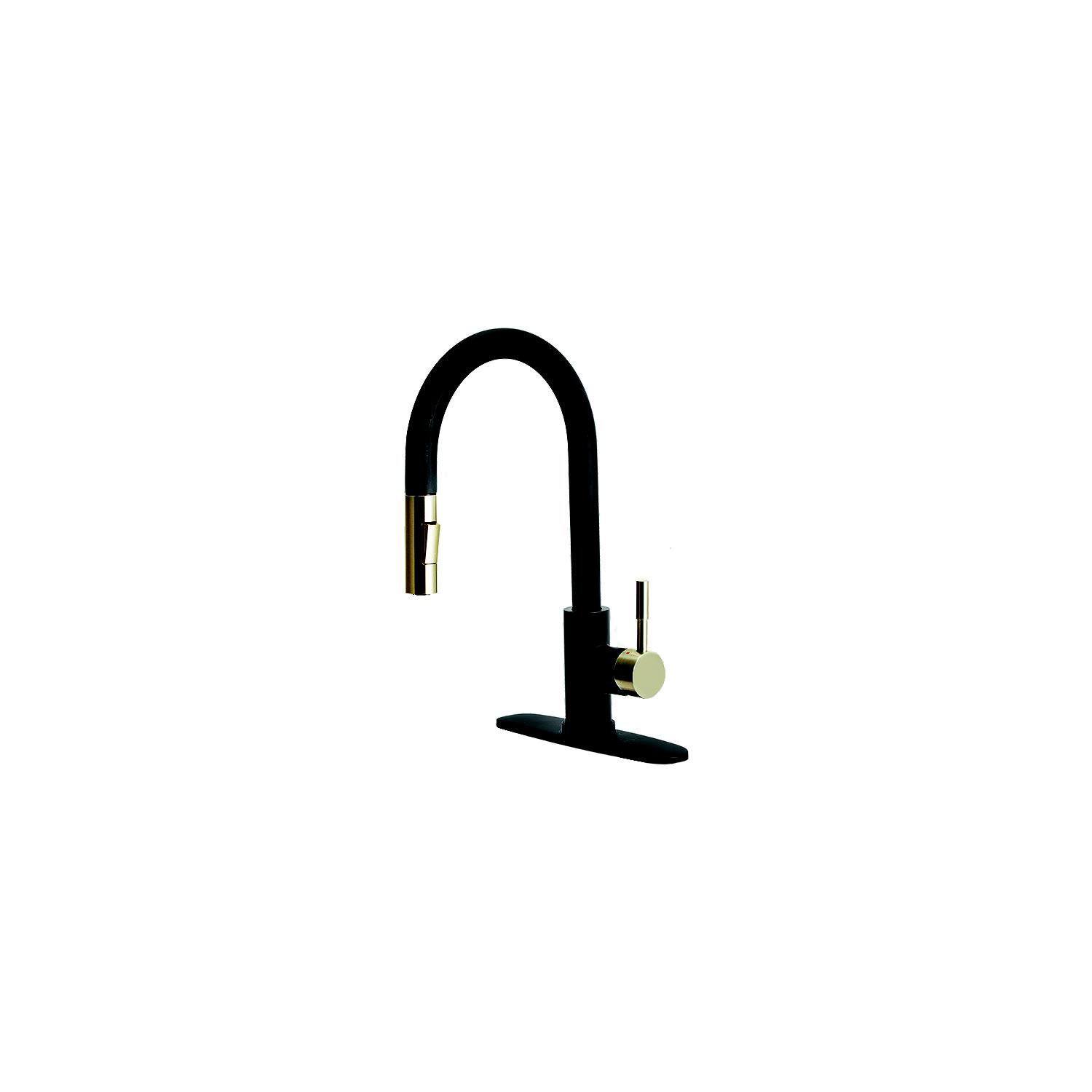 Dura Faucet DFMK530SLKMBSN Streamline Pull-Down Kitchen Faucet, Matte Black – Satin Nickel Streamline Single Handle Pull-Down Kitchen Sink Faucet with optional Deck Plate features a Smooth-turning single-lever for quick and precise control of temperature and stream strength. The detachable sprayer toggles between aerated and spray stream functions. It provides full sink access, and securely locks into place.This simple hi-arc faucet has a sleek design that upgrades any motorhome, 5th wheel, trailer, and camper. The durable disc cartridge provides leak-free operation. Corrosion- and rust-resistant body ensure faucets longevity.Limited lifetime warranty.