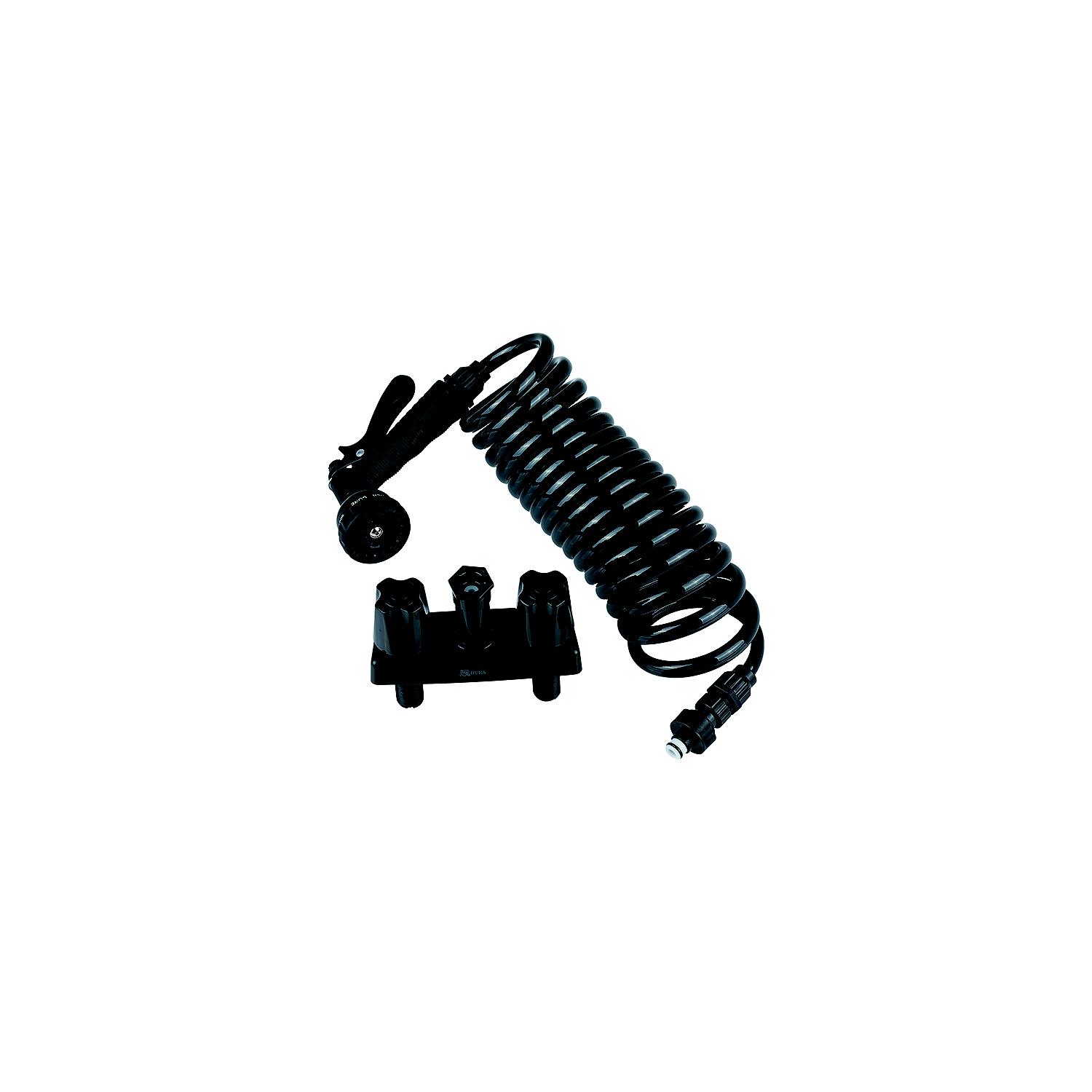 Dura Faucet DFSA186BK Exterior Spray Faucet Kit, Black Multi-Spray Nozzle, 15 Coil Hose with Quick Connector and Faucet.