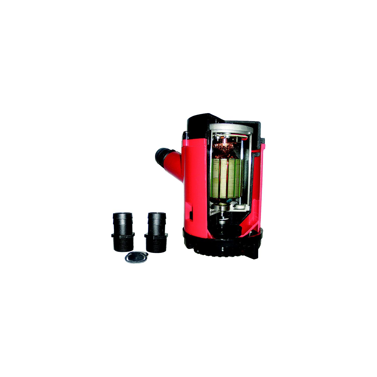 Johnson Pump 2200 GPH Bilge Pump 24V Heavy duty engineered with better motor performance and less noise and vibration provide ultimate reliability. Featuring liquid cooled, tall stack 12-pole motors with double ball bearing design and low amp draw. The 2200 & 4000 GPH models offer a mechanical seal. Includes multiple port size fittings and removeable check valve. With robust motors, high impact ABS plastic and unique threaded port design, these pumps exceed the tough demands of commercial and recreational duty. The 1600/2200 GPM models feature same baseplate as Rule 1500/2000 for easy replacement.