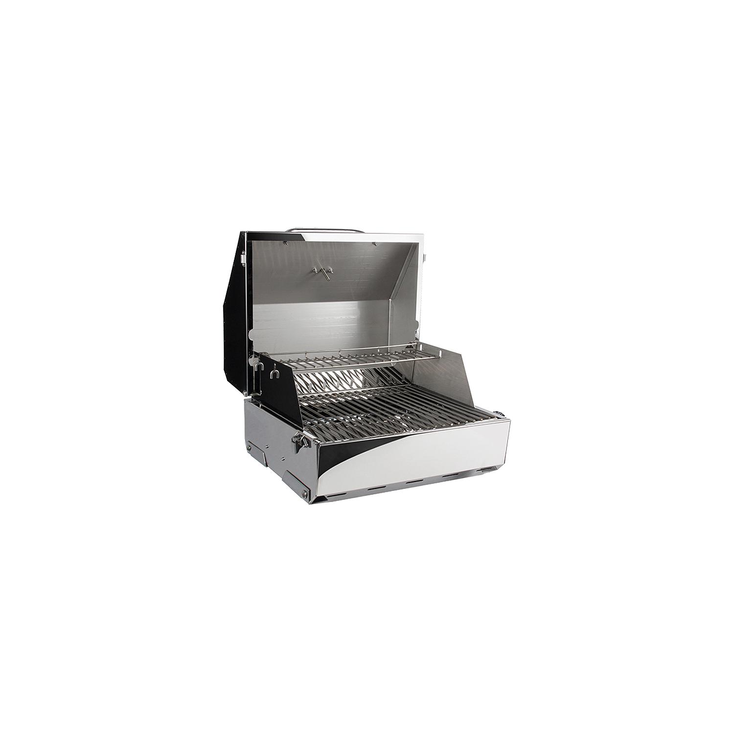 Kuuma 58155 216 Elite Gas Grill, 216 Sq. In Cooking Area The grills in the Elite Series are the largest in the Kuuma line. Standard features include stainless steel construction, simple control knob, integrated folding legs, removable warming rack, built-in thermometer, piezo igniter, removable Lift-and-Clean liner, grease tray, latching lid and staycool handle. They can be used tabletop or mounted on any Kuuma rail, rod or pedestal mount.