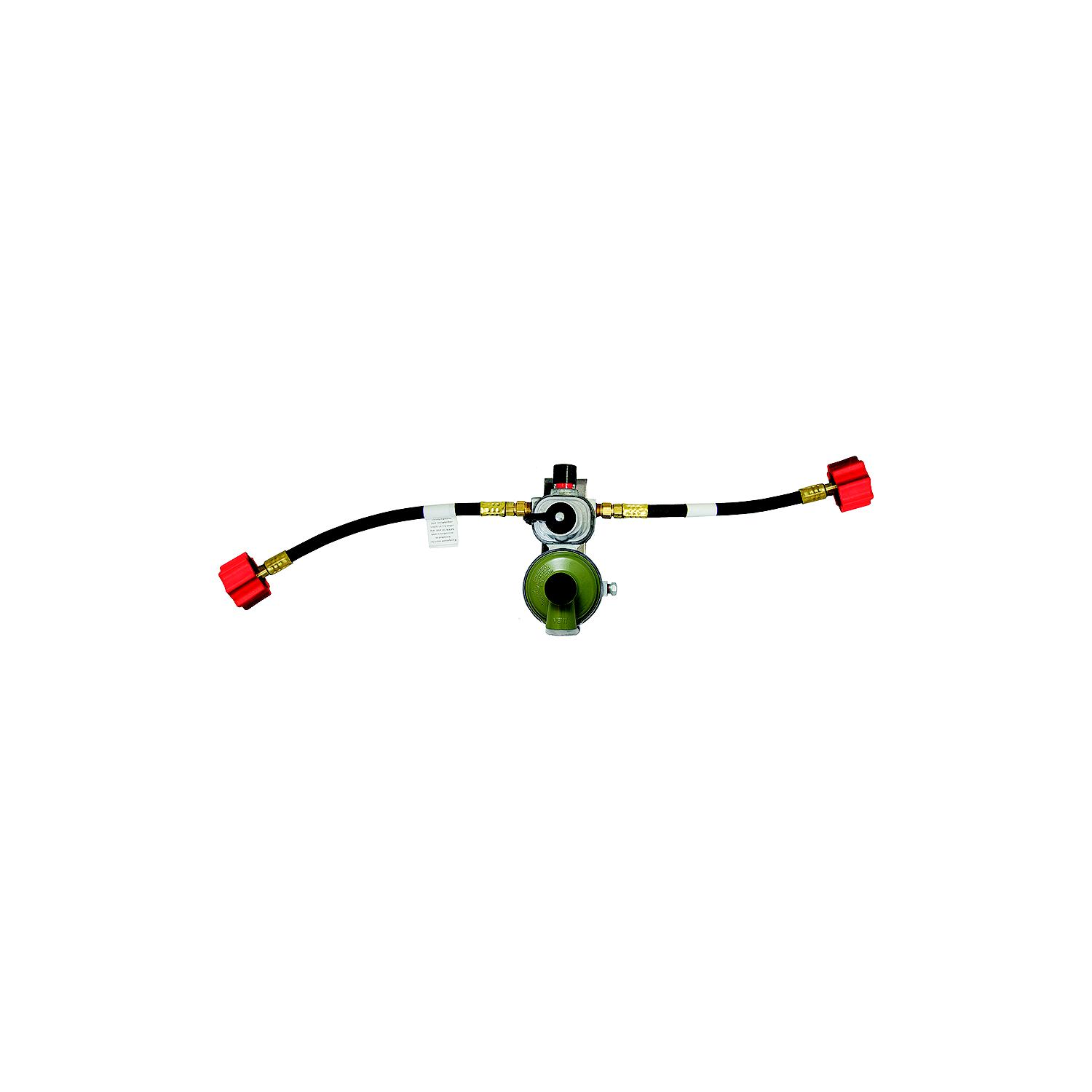 MEC MEGR253HPPT24 Excela-Flo Automatic Changeover Regulators, High Capacity w/24″ Hose, Packaged The Automatic Changeover Regulator automatically redirects LP gas vapor flow from an empty service cylinder to a reserve cylinder, without interruption of service. It features an easy to read green indicator which changes to red when the service cylinder needs to be refilled. Meets UL, RVIA and NFPA requirements.