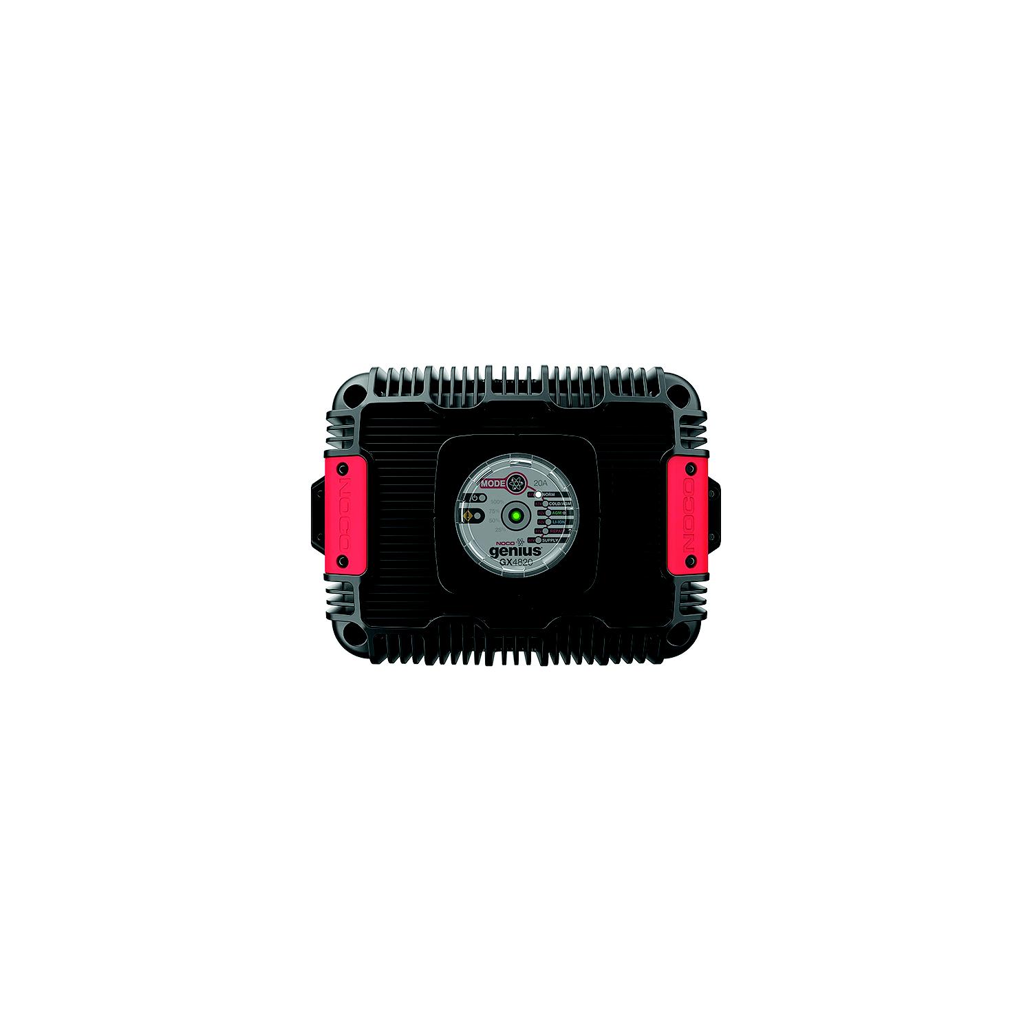 Noco GX4820 48V, 20A Industrial Battery Charger The GX4820 is a high-frequency, 92 percent high-efficiency industrial battery charger for professional fishermen, electric vehicles, golf carts, scissor lifts, pallet jacks, or utility vehicles. Fast and efficient battery charging with multiple charging modes at a push of a button. It’s universally adaptable design allows for global use with replaceable A/C and D/C cables. Designed for all types of deep-cycle lead-acid and lithium-ion batteries. Suitable for both on-and-off board applications.