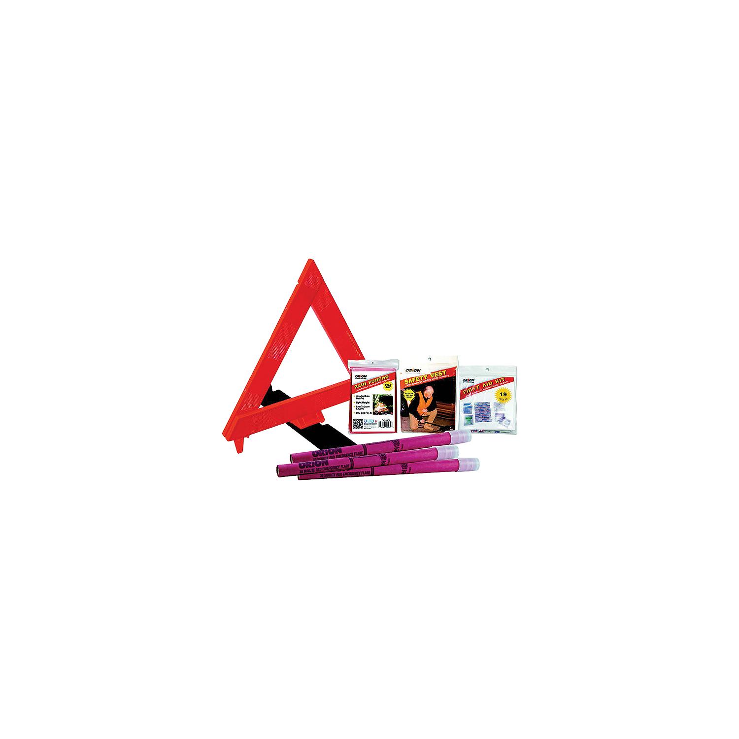 Orion 8959 Compact Roadside Kit A compact, lightweight kit that is affordable and practical. It contains the items that will keep you seen and safe on the side of the road in case of a breakdown. Each kit is packed in a heavy-duty zippered polyester bag. The bag has velcro on the back to secure placement in a locker. Includes: