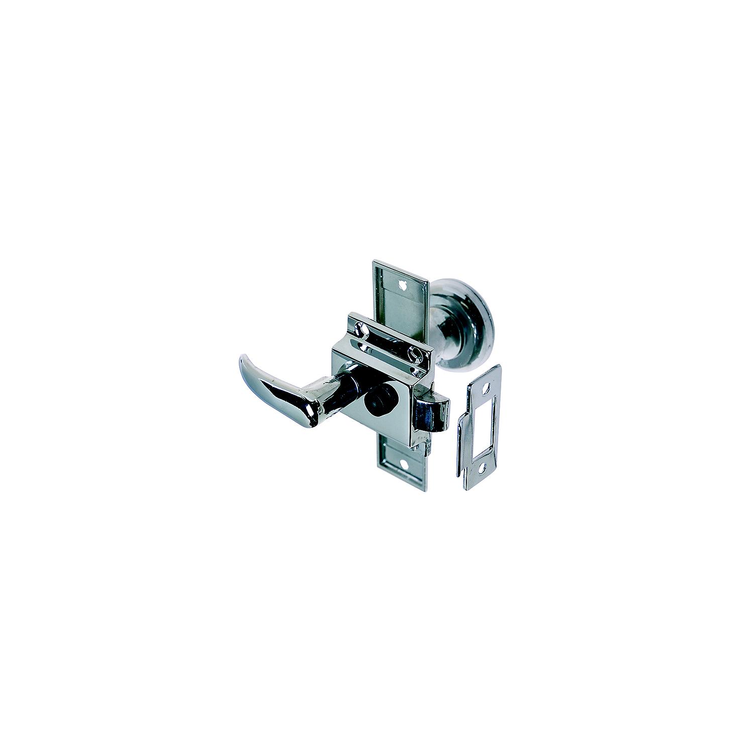 Rim Latch St Reverse Bevel w/Flush Strike Chrome plated zinc. Sliding lock button. Screw size is #6. Escutcheon is 4-3/8″ x 1-1/4″. The case measures 2-1/8″ x 1-3/4″. For door thickness of 5/8″ to 1-3/8″.