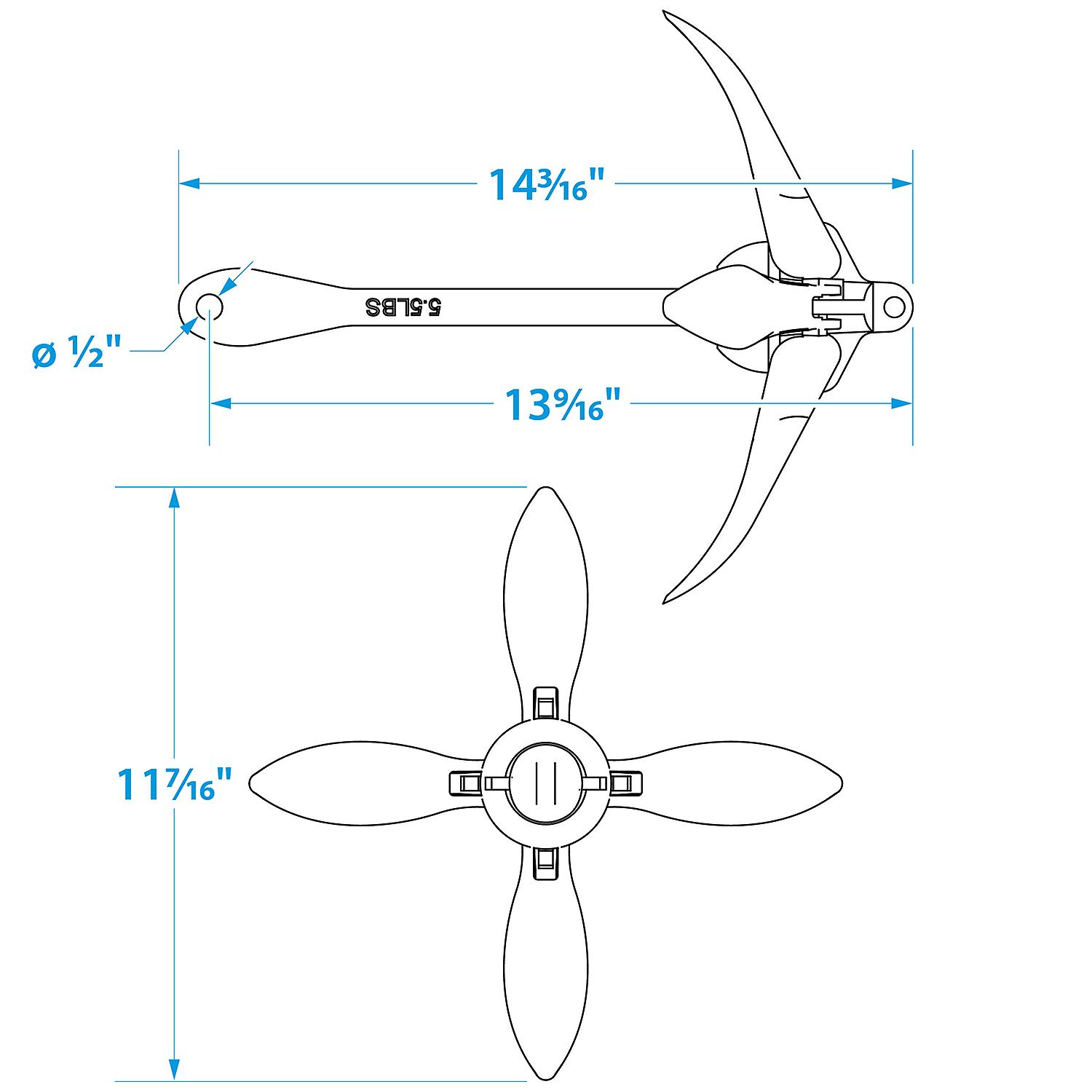 Seachoice 41010 Galvanized Folding Grapnel Anchor, 5-1/2 lbs. Made of malleable iron, heavily galvanized. Operates and folds up easily to store. Lockable in open and closed position. Great for small craft and dinghies. Includes shackle.