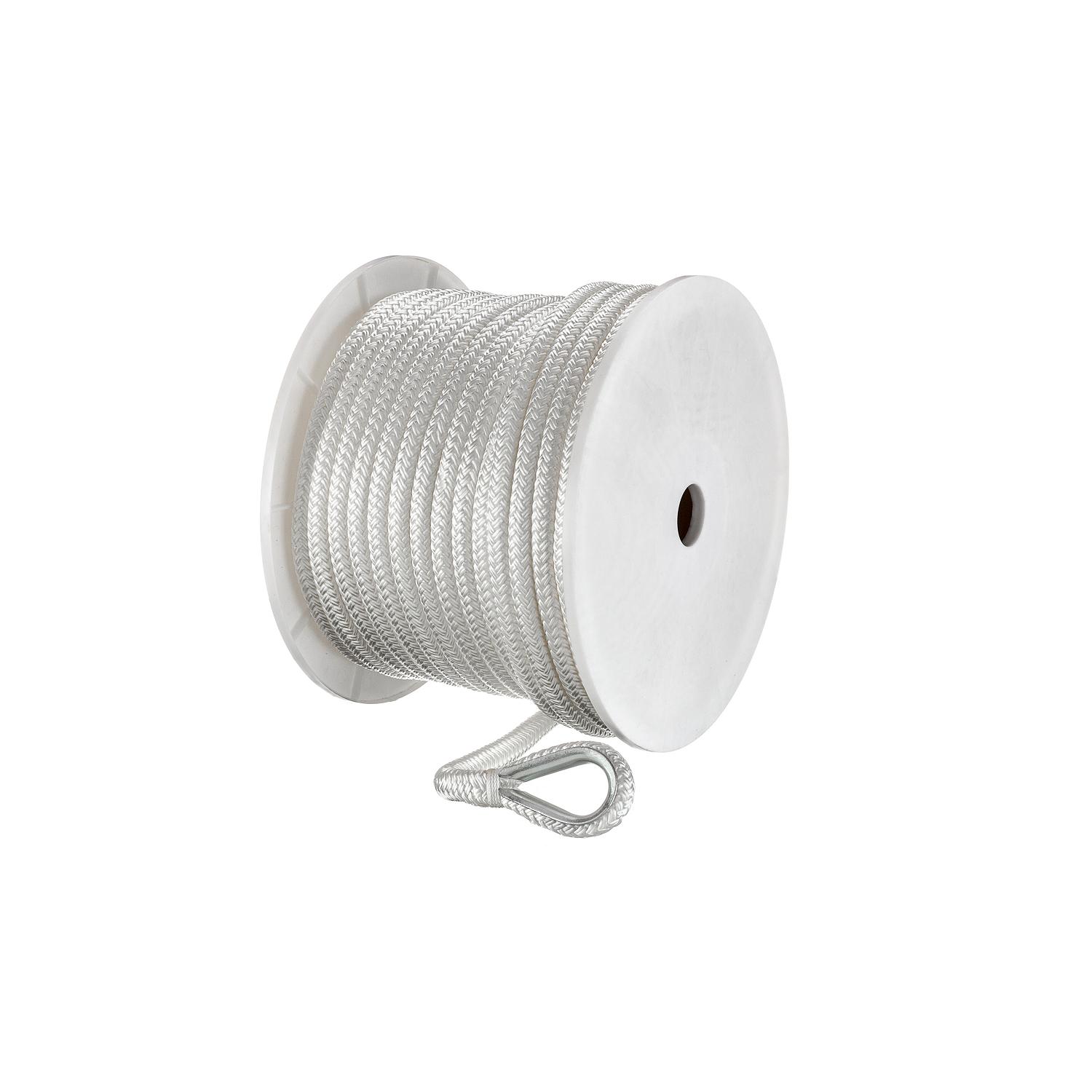 Seachoice Double Braid Nylon Anchor Line, White Extremely strong line designed to absorb sudden shock loads. Comes with thimble.