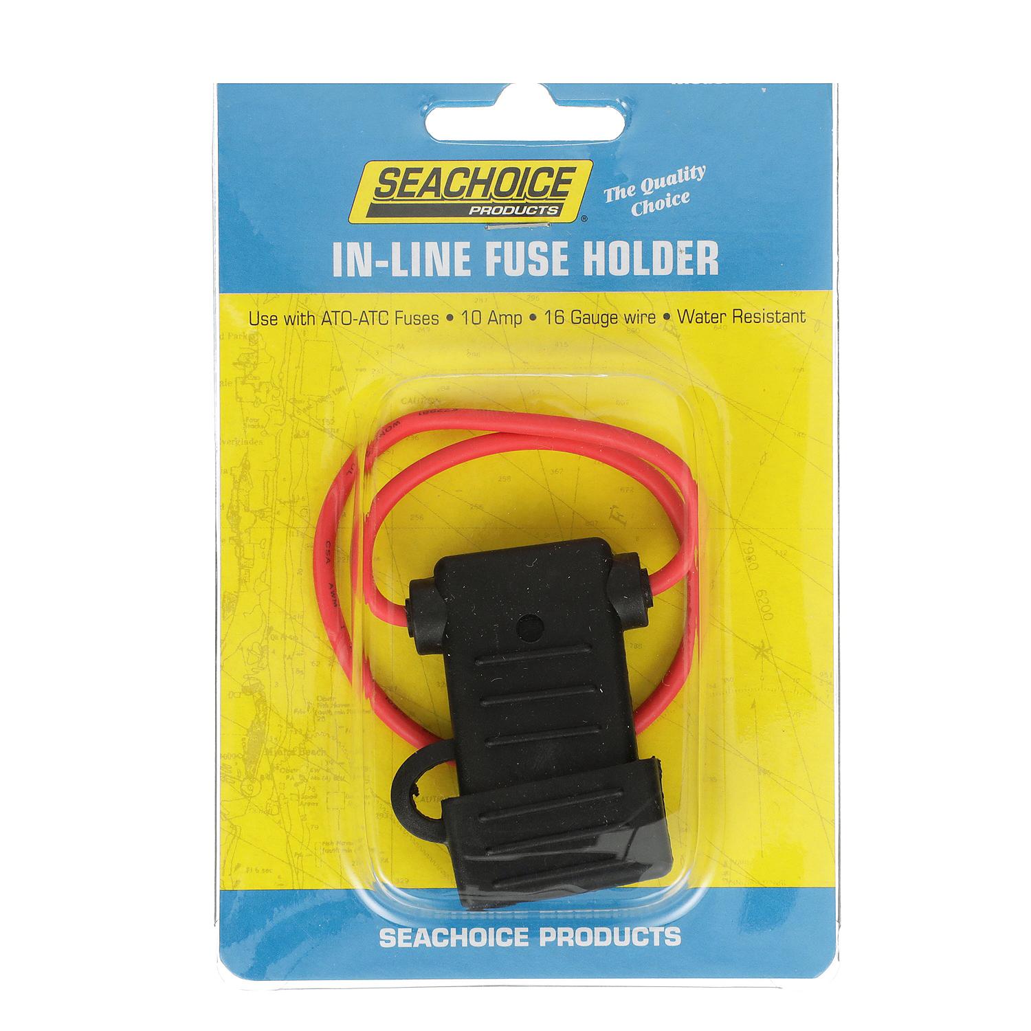 Seachoice In-Line Fuse Holder ATO/ATC Easy to install, easy to change ATO-ATC fuse holder. Used in most recreational vehicles. Comes with cap to seal out moisture. Brass electrical contacts. Fuse included.