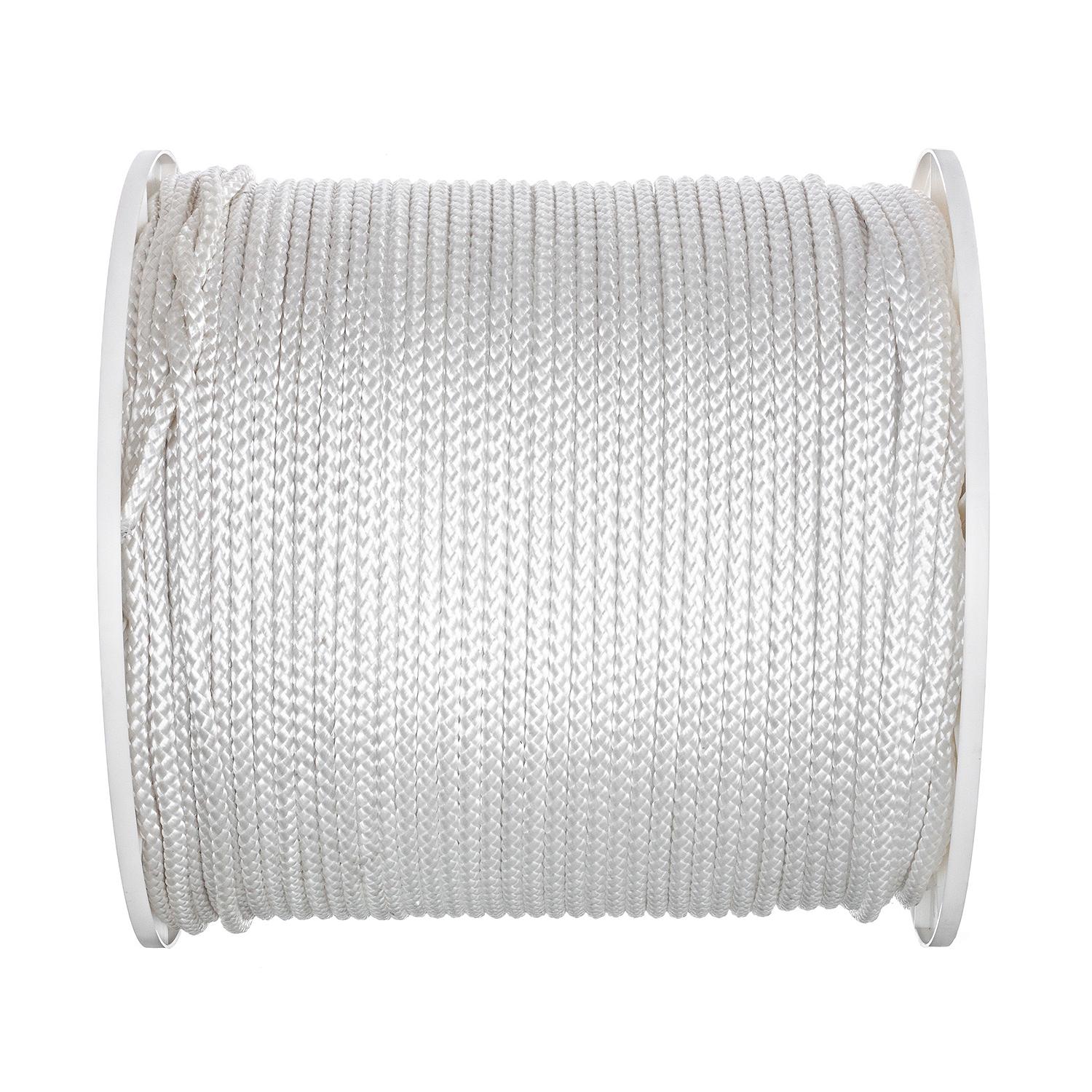 Seachoice White General Purpose Tie Down Cord 1000′ Spool An economical general purpose rope. Constructed of 8 strand white braided polypropylene cover with a knot holding control core. Excellent knot retention. Ideal for use with boat covers or to form the support structure for shrink wrapping boats.