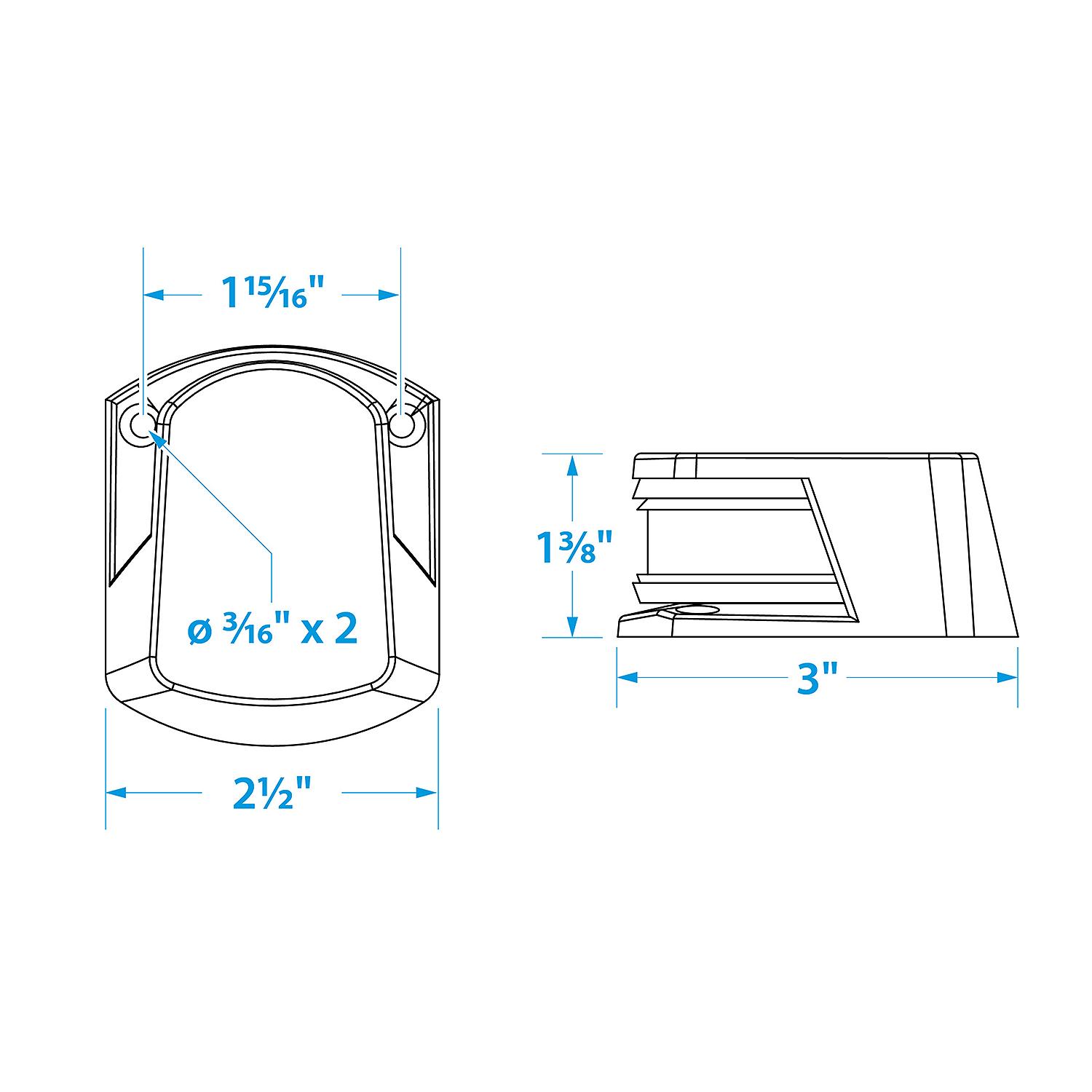 Seachoice Zamak Bi-Color Bow Light 1-mile visibility for sail or powerboats under 39′. Meets ABYC Standard A-16. 12V DC – 6 CP lamp included. Pre-drilled with two countersunk holes to accommodate #8 screws. Housing is die-cast zamak. Size: 2-3/4″L x 1-3/8″H x 2-1/2″ base width.