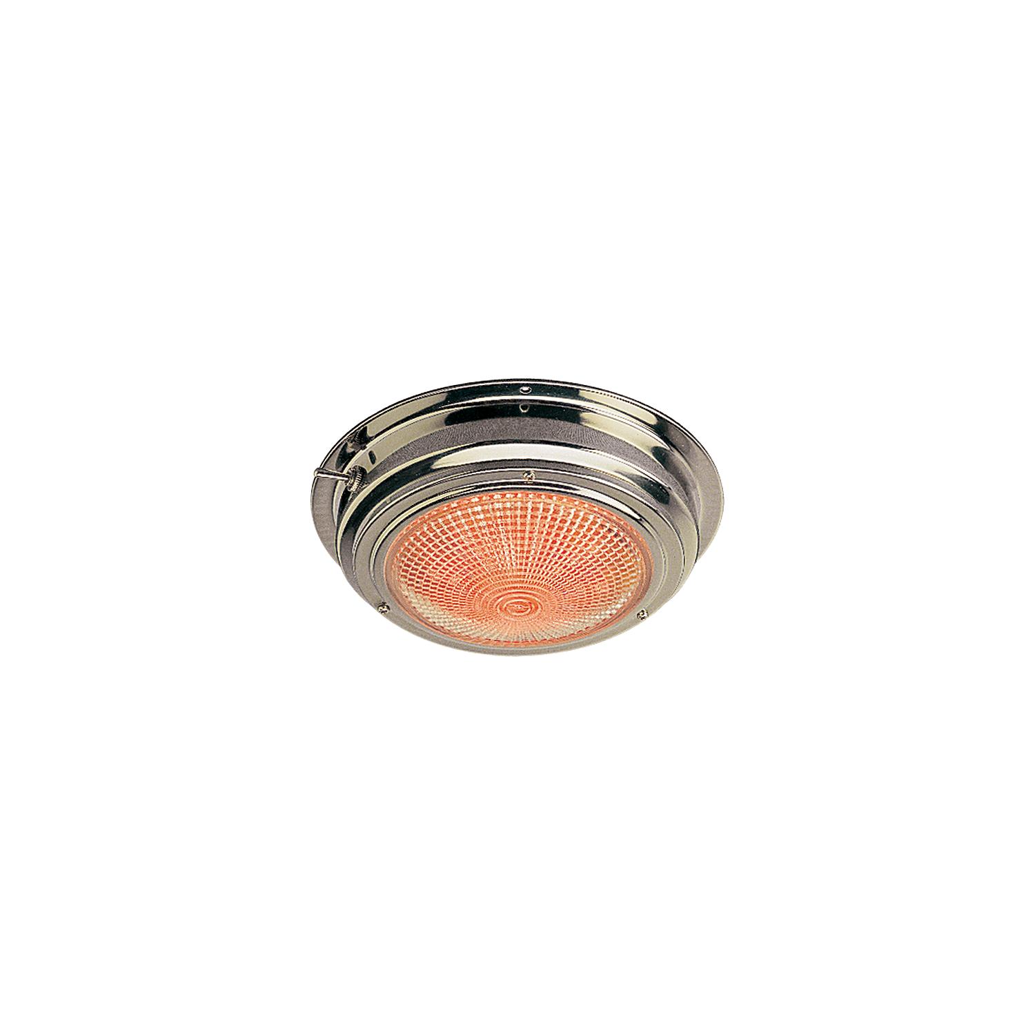Seadog LED Day/Night Dome Light, 5″ These LED Day/Night Dome Lights are constructed of corrosion resistant stamped 304 stainless steel. Prewired with integral on/off/on toggle switch and two separate light circuits. One circuit uses a clear bulb and the other circuit uses a red night vision bulb. With the low current consumption of 0.068 amps @ 12 volts, they give off very little heat and have extremely long service life. These vibration resistant LED Dome Lights feature 15 white and 5 red LEDs per light. Surface mounts with three #6 RH fasteners (not included).