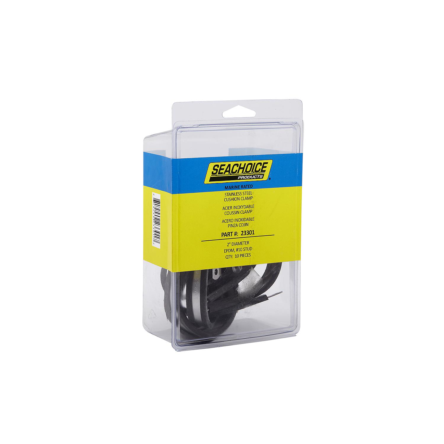 2″ Resistant to oils, acids and salt water. All clamps have a #10 stud size. Temperature range form -50 to 300F. 304 Stainless Steel.