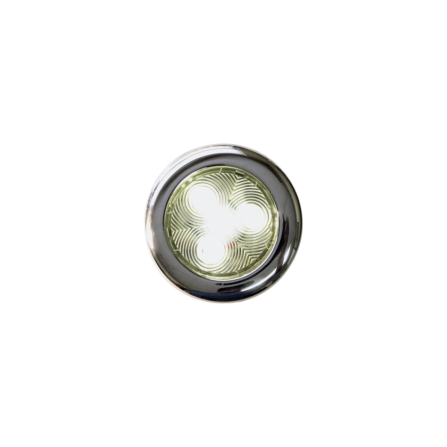 T-H Marine LED Stainless Puck Light Highly polished 304 stainless steel housing. Ideal for use in boats and RV’s as a ceiling light, courtesy light, task light, under cabinets, cockpits, headliners, and compartments. Clear Polycarbonate engineered lens optics provide uniform and wide angle illumination. Circuit board is completely sealed in epoxy to resist water, corrosion and vibration. LEDs feature super long life span of up to 50,000 hours.