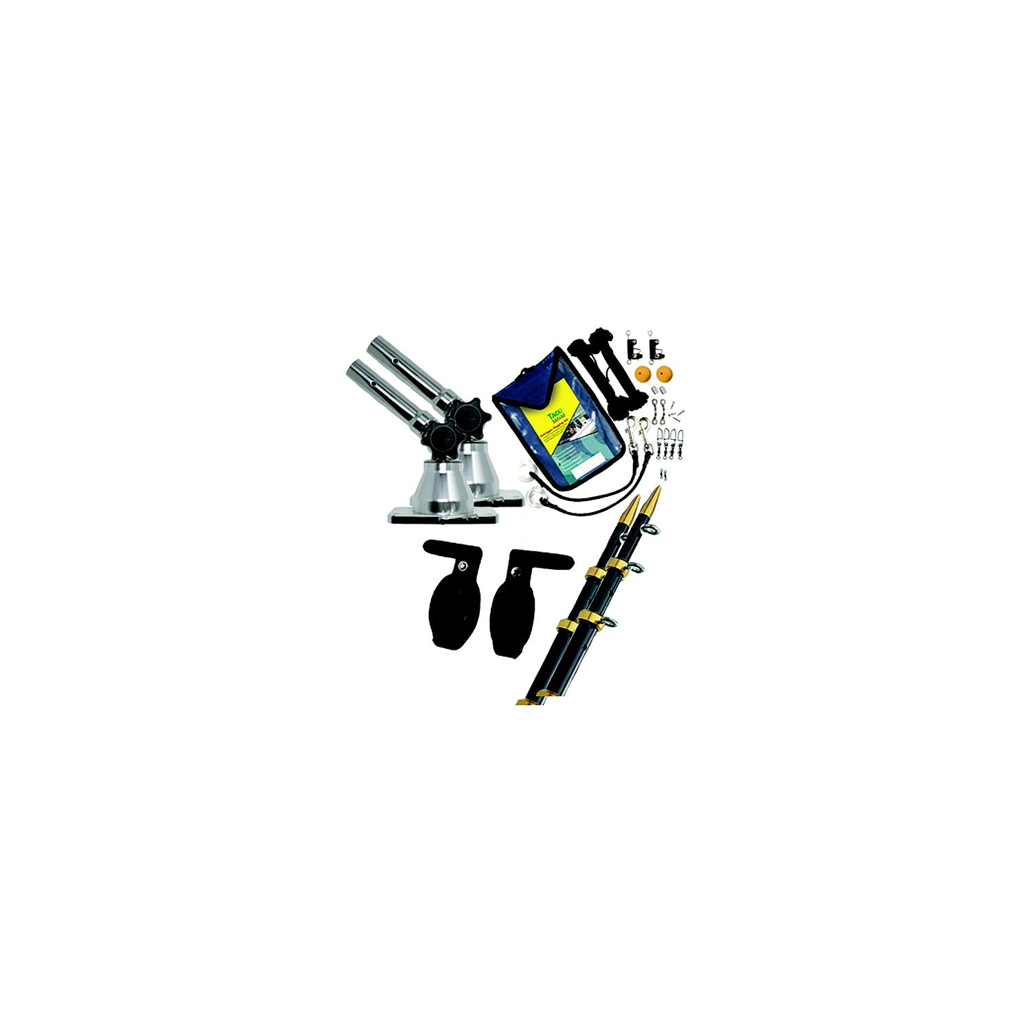 Taco GS170BLKGDKIT Grand Slam 170 Outrigger Kit, Black/Gold All inclusive kit includes: Grand slam 170 mounts for 1-1/8″ outrigger, Heavy-Duty telescoping outriggers, premium rigging kit and outrigger line caddy.