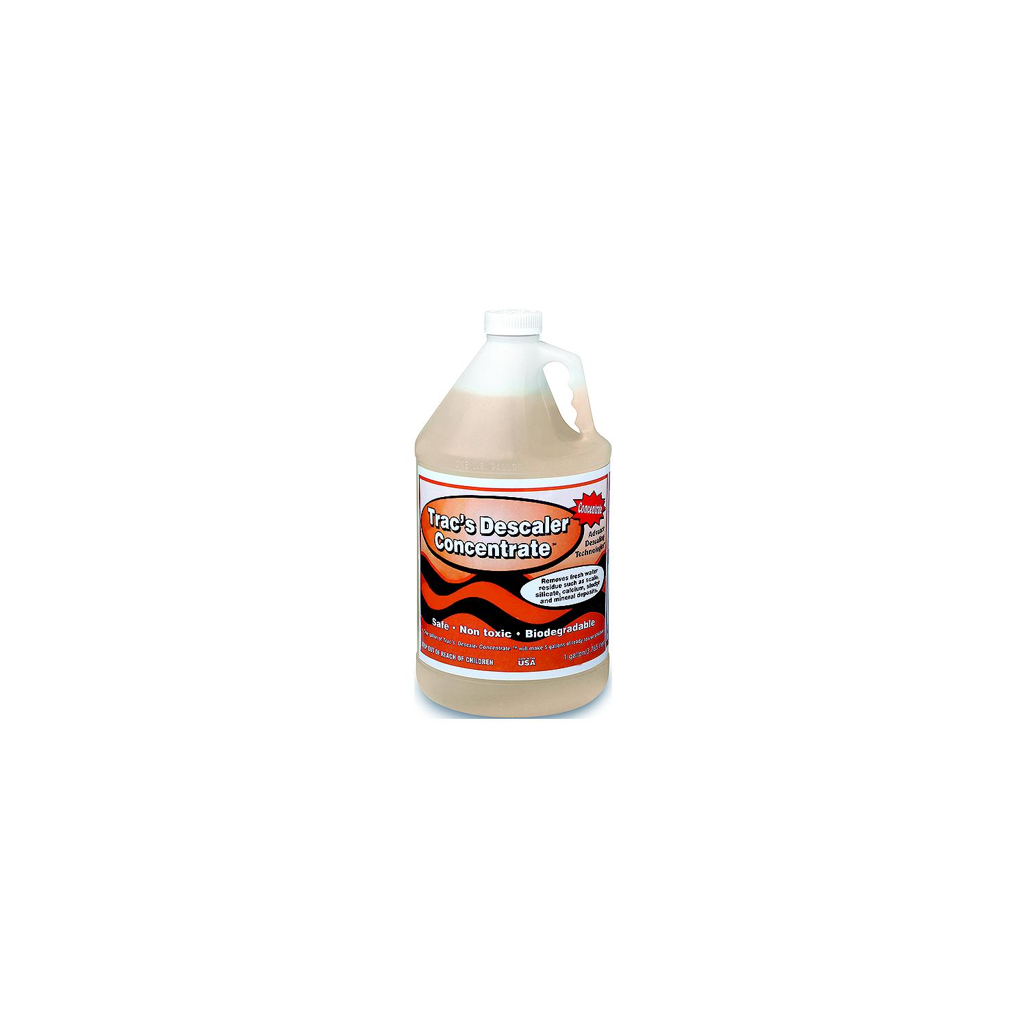 Trac Ecological Descaler Fresh Water Scale Remover, 1 Gal ready-to-use TRAC Descaler is 100% biodegradable, safe and non-toxic. Designed specifically for fresh and brackish water applications, it can safely be used to remove scale and other mineral deposits from within engines, cooling towers, boilers, and/or heat exchangers. Will not harm paint, gaskets, seals, plastics, rubber, wood, fiberglass or any metal commonly found in water systems.