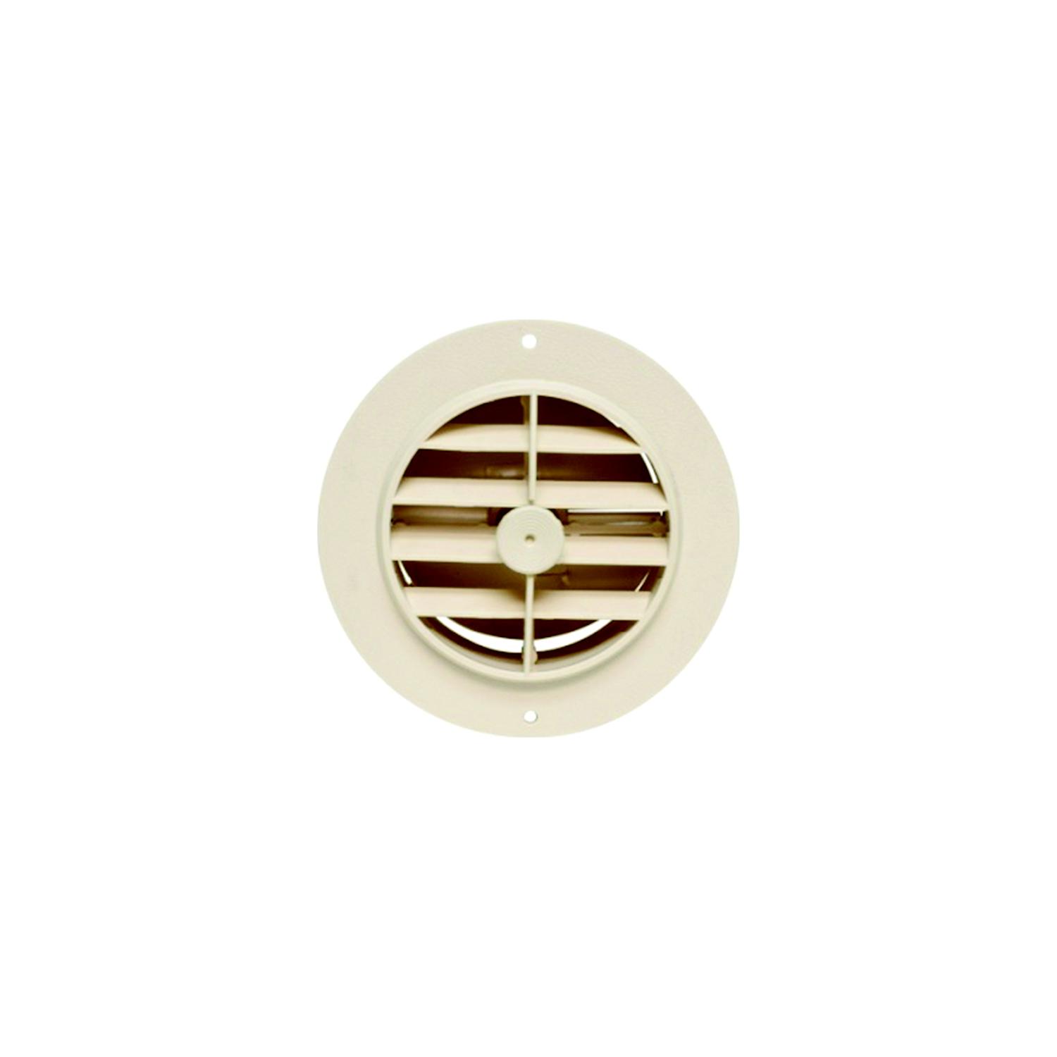 Valterra Dampered Heating & A/C Register, Off-White Plastic 2-piece register shows no screw holes and rotates to direct air flow. 4″ ID / 5-3/8″ OD. Installation tape and hardware included.