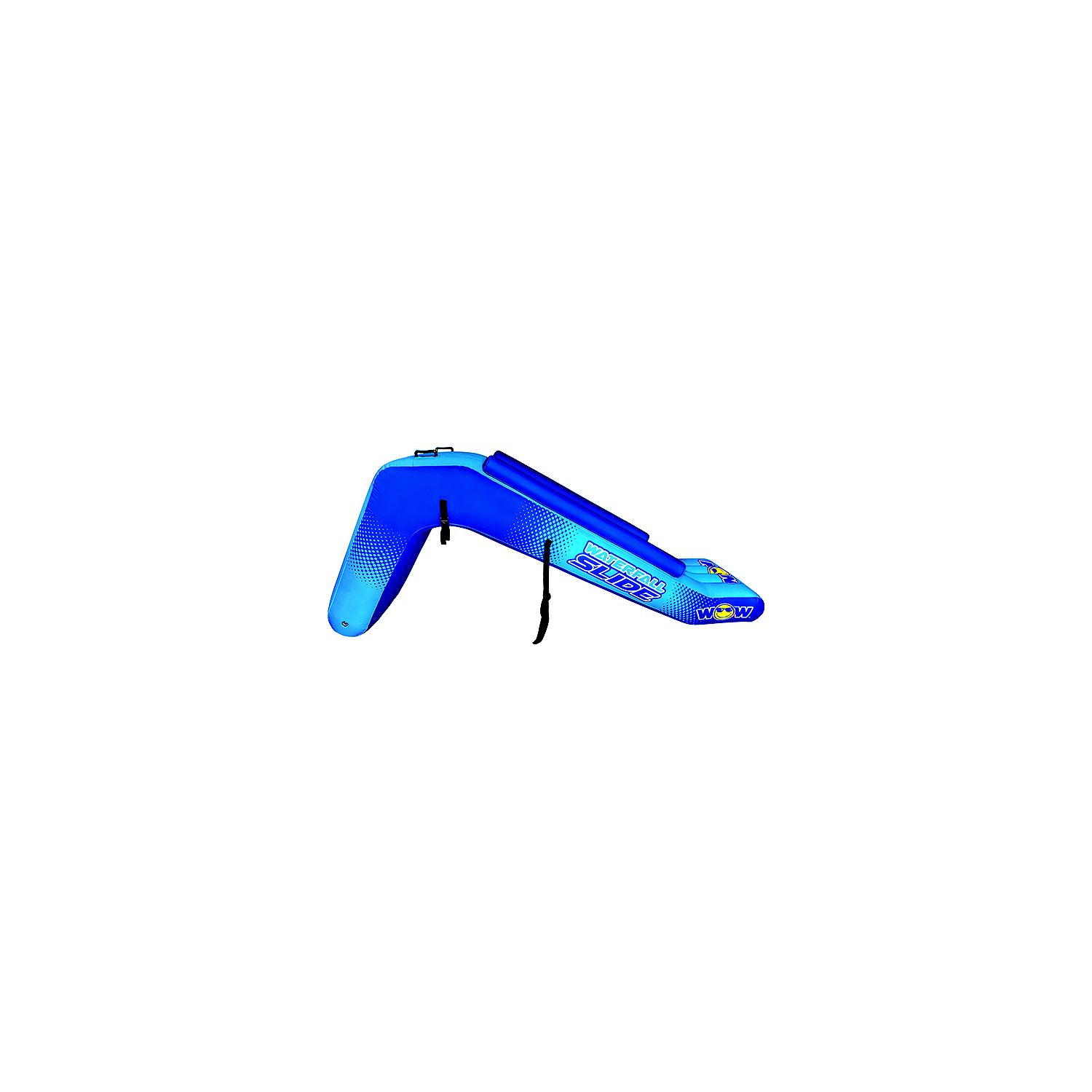 WOW 212070 Pontoon Waterfall Slide The Waterfall Slide by WOW turns any pontoon into a playground! Slide into the coolness of your favorite body of water. The Waterfall slide is made with a Premium layered reinforced PVC which makes it Ultra Heavy-Duty for heavy-duty fun. Capacity: 1 person (200 lbs. Max)
